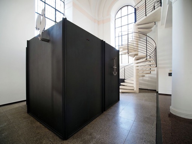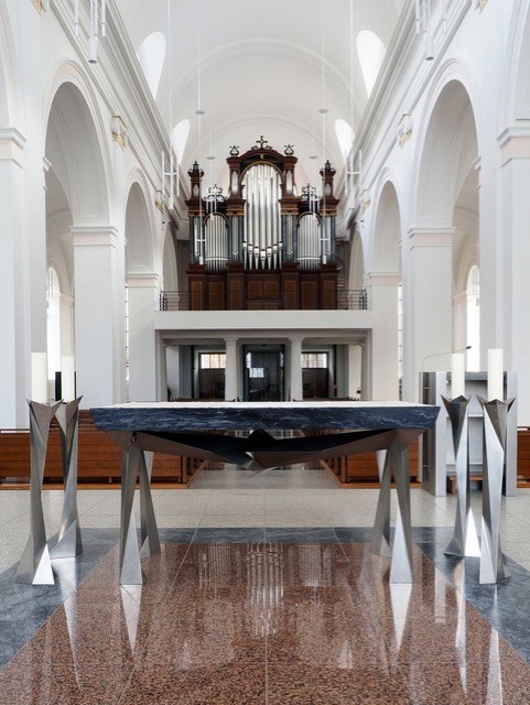 In den Jahren 1993 und 1994 gestaltete Erich Hauser den Innenraum der Kirche Sankt Maria neu. Diese Innenraumgestaltung bildet zweifellos einen beeindruckenden Höhepunkt in Hausers Gesamtwerk und verbindet zeitgenössische Kunst mit spätklassizistischer Architektur. Der Altarraum, die Seitenschiffe und der Beichtraum wurden mit Objekten aus Stahl ausgestattet, wie zum Beispiel dem Beichthaus, dem Taufstein, dem Ambo, Kerzenständern und anderes. Eine acht Meter hohe kreuzförmige Stahlplastik bildet den optischen Glanzpunkt in der Apsis. Im Zuge der Neugestaltung der Kirche gestaltet Erich Hauser auch ein Priestergewand, das in Farbe und Design der sakralen Kirchenkunst angepasst wurde. Für das Gesamtkunstwerk fertigte Erich Hauser zunächst Modelle aus Zinkblech an.